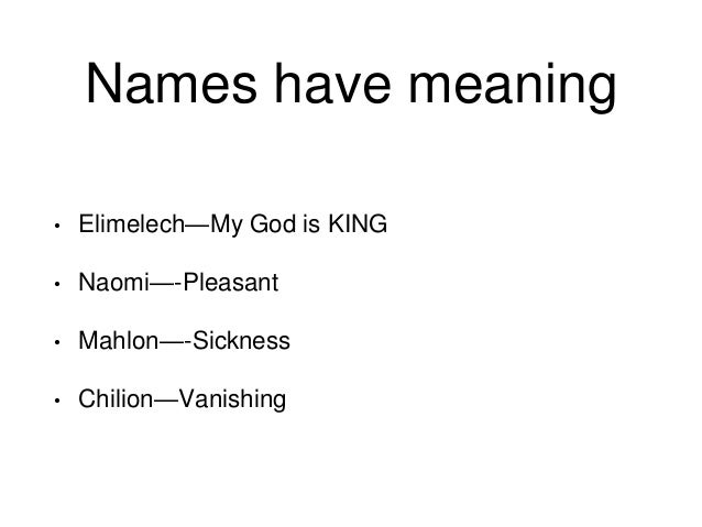 Meaning of names mahlon and chilion. Asher Tiran Liana Gracelynn Names that sound like Chilion. Abarim Publications Biblical Dictionary. Their names have been taken to mean sickness and destruction and have been explained as symbolic of their.